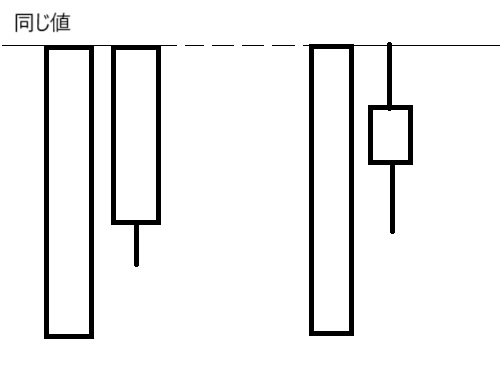安値圏で、大陰線と陰線の2本の安値が