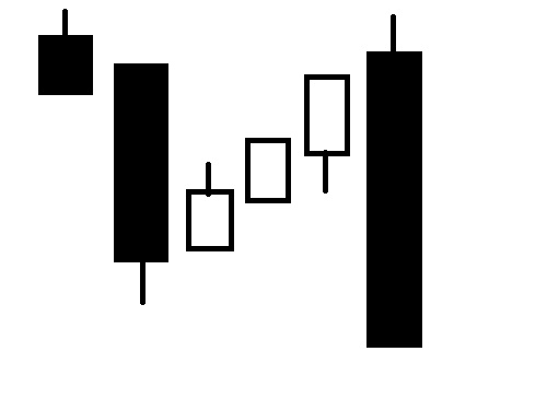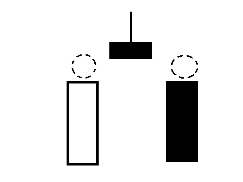 大陰線を描き、下に空ができ、下に星のような陽線か陰線が生まれ、