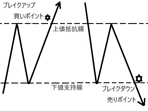 抵抗線・支持線を突破します。
