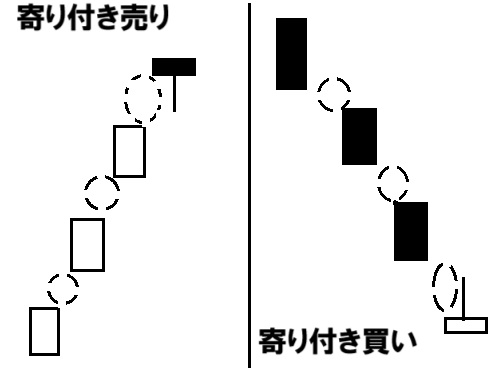 窓を3つ開けて上げた場合は、寄り付き売り。
