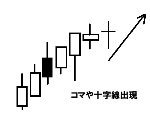 小さな陽線や陰線が、いくつか出現します。