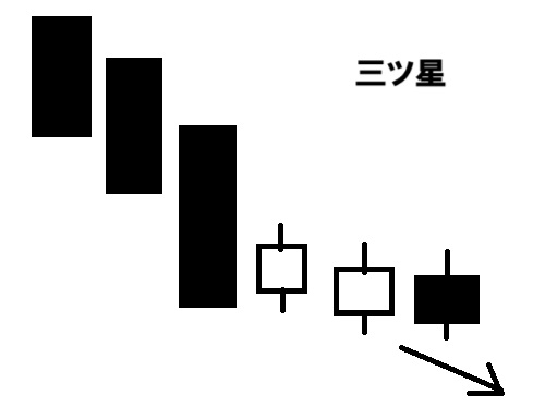 上昇中の「三ツ星」と逆のケースです。