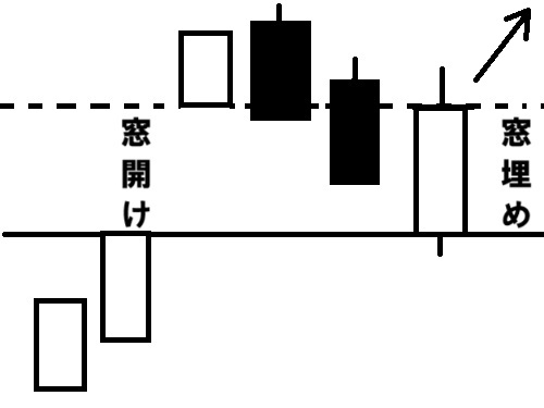 上昇途中の窓埋めは買い、下降途中の窓埋めは売り