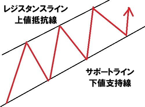 この場合も「下値支持線」または「サポートライン」と呼ばれます。