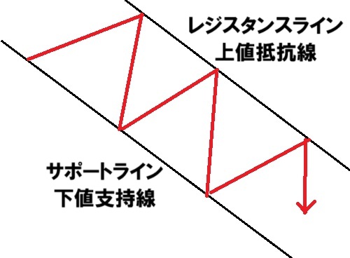 上値と上値を線でつないでいくと、下降する直線になります。
