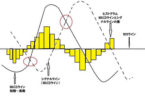 - MACD(マックディー)が、シグナルを下から上に抜けるゴールデンクロス。MACDがシグナルを上から下に抜ける現象はデッドクロス。