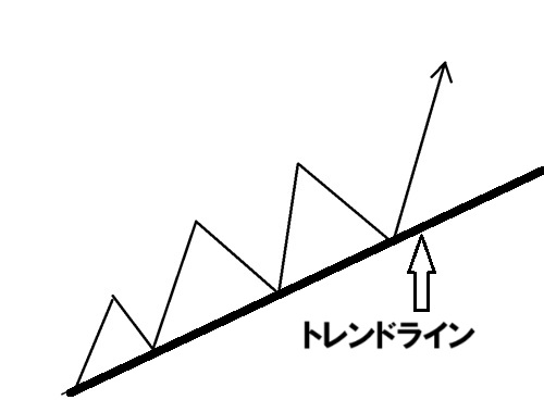 上昇トレンドの場合、上昇トレンドラインまで価格が下がってきたところで、