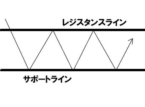 この水平線がレンジ相場のレジスタンスラインとなります。